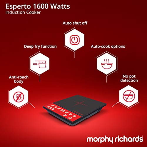 Specification: Morphy Richards Acrylonitrile Butadiene Styrene Esperto 1600 Watts Induction Cooker (Black and Red)