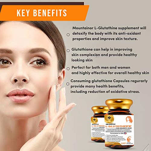 MOUNTAINOR L-Glutathione is a powerful antioxidant that improves the level of Glutathione levels in the body as a result of and toxin exposure. Boosting glutathione may provide many health benefits including lever detoxification, Skin appearance.
