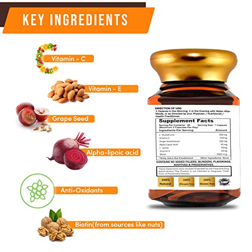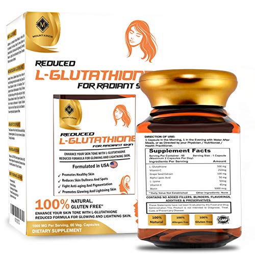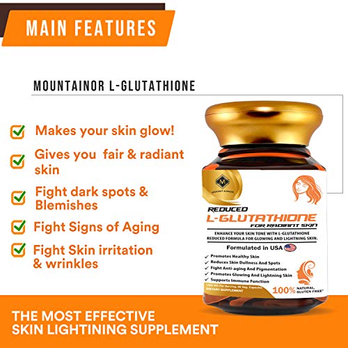 Specification: MOUNTAINOR® L Glutathione 1000mg for Healthy, Brightening & Radiant Skin (60 Veg Caps) for Men & Women with Vitamin C…
