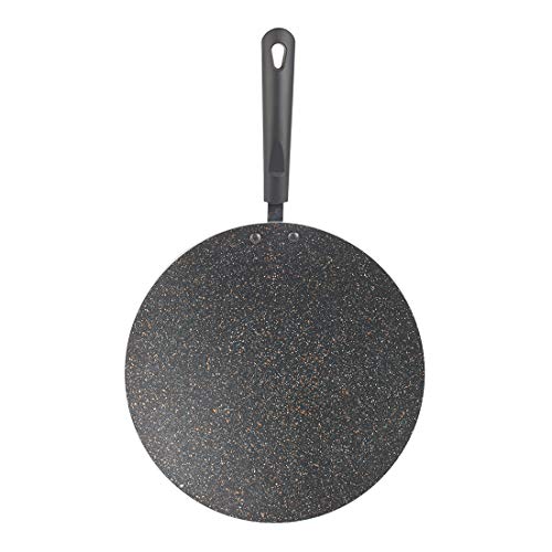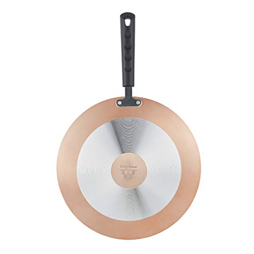 Dot induction for even heat distribution, soft touch handle for ergonomic grip, superior marble coating for oil free cooking, material: Forged aluminum with copper finish.
