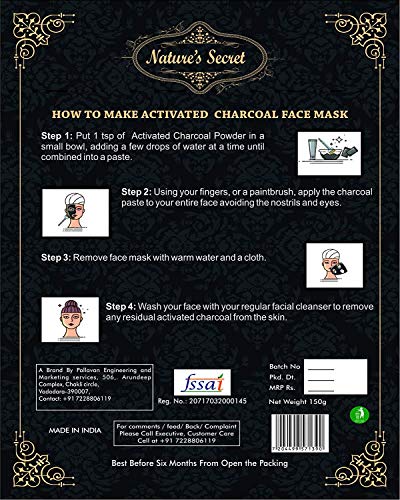 Specification: Nature’s Secret Activated Charcoal Powder for Face Mask and Teeth Cleaning, 100 g
