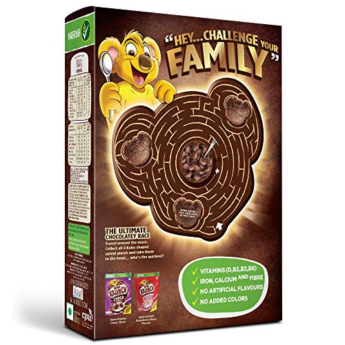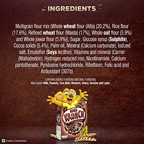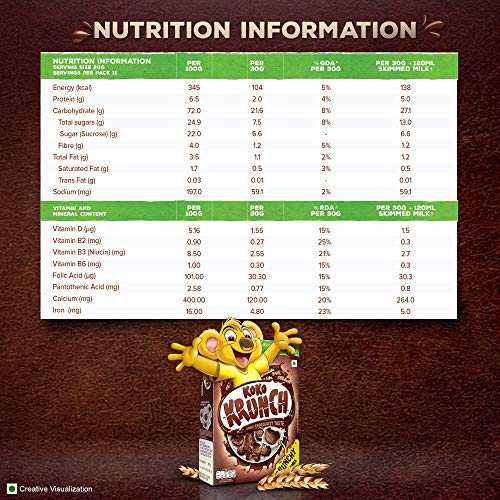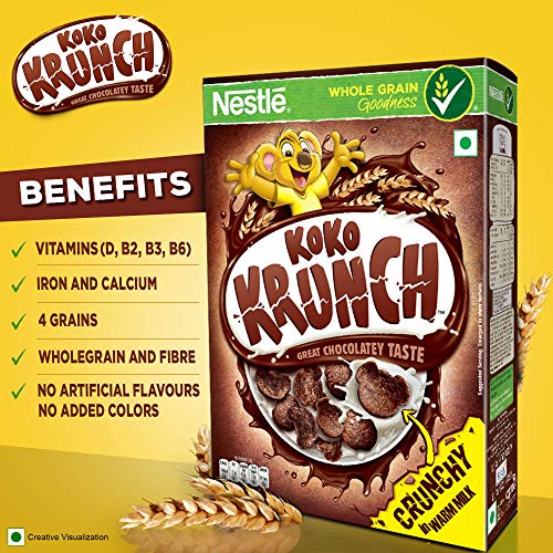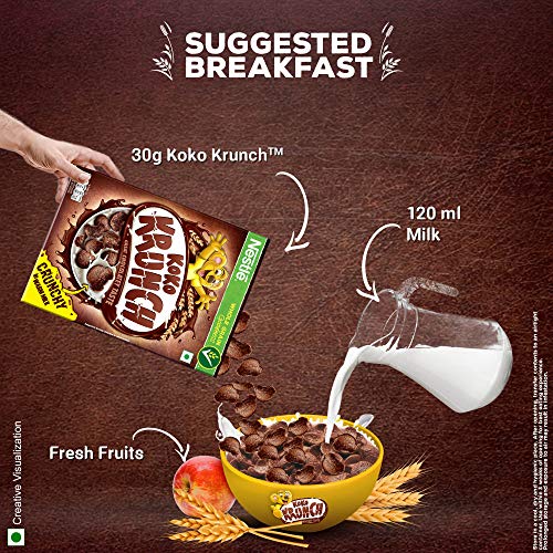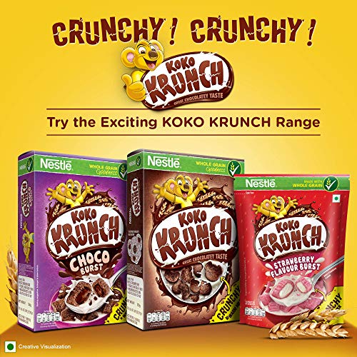 Relish the goodness of Nestlé Koko Krunch which provides more than just a good start to your day, by offering a sensible, great-tasting breakfast focused towards a better, healthier future. Whole grain is an important part of a healthy balanced diet and Nestlé ensures you and your kid gets the whole grain goodness paired with a lot of deliciousness. What’s more? Koko Krunch is your everyday reliable source of Vitamin D and Calcium as well as B-vitamins, Iron and Fibre. These nutrients, with a chocolatey taste, combine to give a nourishing start to your day. Koko Krunch Cereals can be prepared easily by adding 30 grams of Nestlé Koko Krunch with 120 ml of warm or cold milk for an instant breakfast. The cereal remains crunchy even in warm milk. Allergens: It may contain Milk, Peanuts, Tree Nuts, Mustard, Celery, Sesame and Lupin. Storage Instruction: Store in a cool, dry and hygienic place. After opening, transfer contents to an airtight container. Use within 3 weeks