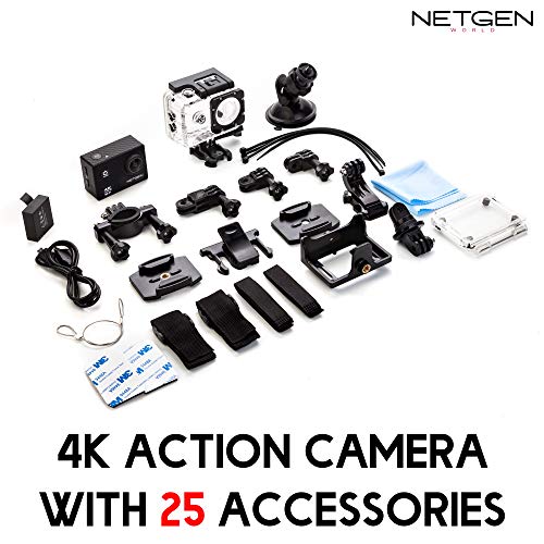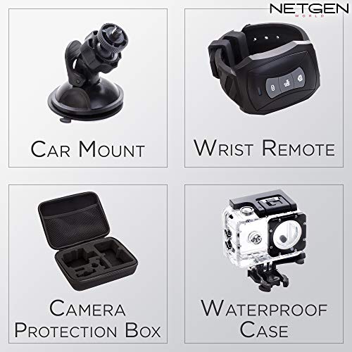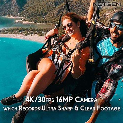 NETGEN Action Camera 16 MP 4k WiFi Ultra HD Waterproof with Full Pack Including Car Mount, Carry Bag, Control Watch, 2…