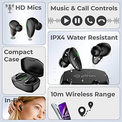 Specification: PTron Bassbuds B21 Bluetooth 5.2 Truly Wireless TWS Earbuds with mic, Immersive Sound, Stereo Calls, 24Hrs Playtime…