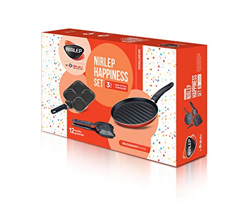 Specification: NIRLEP by Bajaj Electricals Non-Stick Breakfast Gift Set Multi Snack Maker 2.2 mm, Sandwich Griller 2 mm & Grill Tawa…