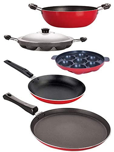 Package Content:Flat Tawa – 29.5cm X Kadhai – 1.25 Ltr X Tapper Pan – 20cm X Appampatram 7 Cavity – 20cm X Appampatram 12 Cavity – 22.5cm