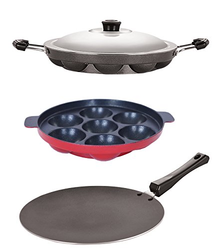 Specification: Nirlon Non-Stick Stain Free Aluminium Appam and Tawa Combo Kitchen Item Set, 2.6mm_CT12_AP(7)_AP(12)