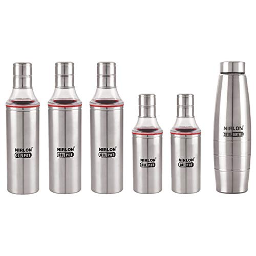 Nirlon water bottle is made of high quality stainless steel. Food-grade stainless steel is used in the food, brewing and wine-making industries so it does not rust, corrode, retain or impart a taste. No matter how many times you refill it, and no matter what you put into it, this bottle will keep your drink fresh, crisp and clean tasting. oil dispenser set designed for storing oil, or other liquid condiments. It is made of high quality stainless steel glass material, which is exquisite workmanship, dust proof and leak proof, easy to replenish and clean, lightweight and portable, widely used in home, kitchen, restaurant, bar, cafe, hotel, party, buffet, barbecues, etc.