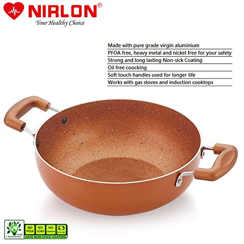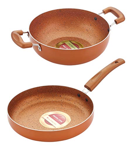 Specification: NIRLON Ultimate Induction Base Non Stick Aluminium 2 Piece Cooking Set (Gold, 1 Fry Pan 24cm – 1.5 L, 1 Kadai 24cm – 3 L…