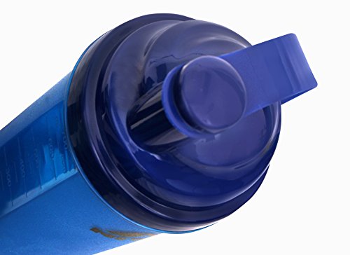 This bottle is completely watertight and hence does not allow the water or your protein shake to spill or leak easily. The semi-transparent body of this bottle has engraved markings to help you measure water or the ingredients of your protein shake conveniently.