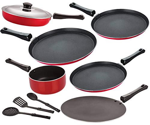 Specification: Nirlon Nonstick Aluminium Cookware Combo Set, Red- 9 Pieces | 2.6mm_FT13_FT12_CT_SPM_FT10_FP12_3SPN