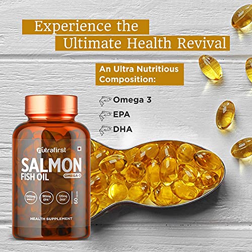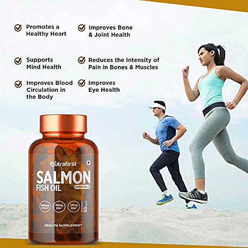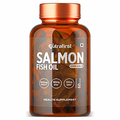 Specification: Nutrafirst Salmon Fish Oil Capsules with Omega-3 (1000mg), EPA (180mg) & DHA (120mg) for Healthy Heart, Brain, Eyes…