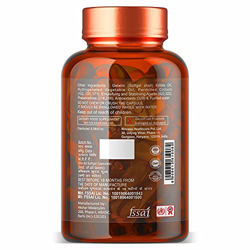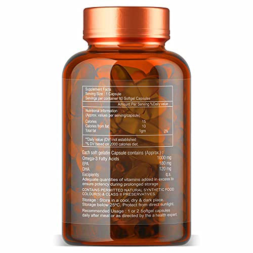 60 capsules: 60 soft gel capsules constituting a perfect blend of EPA and DHA omega-3 fatty acids; suitable for both men and women. It is a non-vegetarian product.