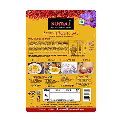 Specification: Nutraj Saffron, Original Kesar/Keshar for Health, Beauty, Food, Wellness and Tilak (Blister Pack 1 Gram)