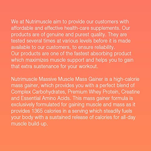 Specification: Nutrimuscle Massive Muscle Mass Gainer – 12 Lbs – 5.44 Kgs – Choco Latte Flavour – For Muscle & Mass Gain – Contains…