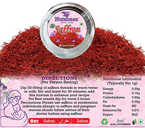 Specification: Nutsbaaz Pure Natural Finest A1++ Grade Organic Quality Kashmiri Saffron/Kesar/Kumkum with Round Box Packaging