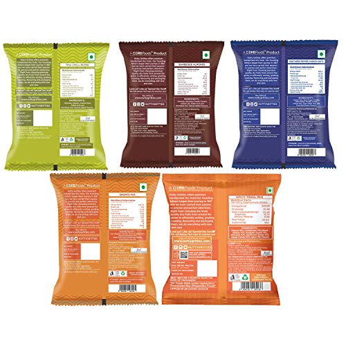 Nutty Gritties Trail Mix – Thai Chilli Blend, Sport Mix, Spicy Trail Mix, Barbeque Almonds and Pepper Cashew(Pack of 5…