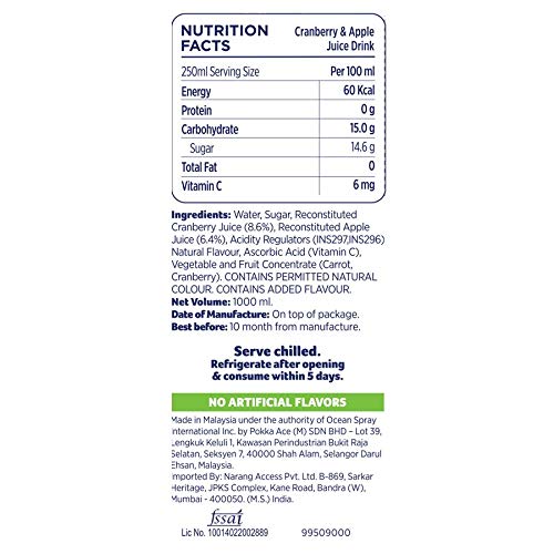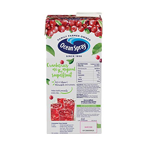 Specification: Ocean Spray Cranberry & Apple Juice with 20% Cranberry, 1 l, Pack of 2