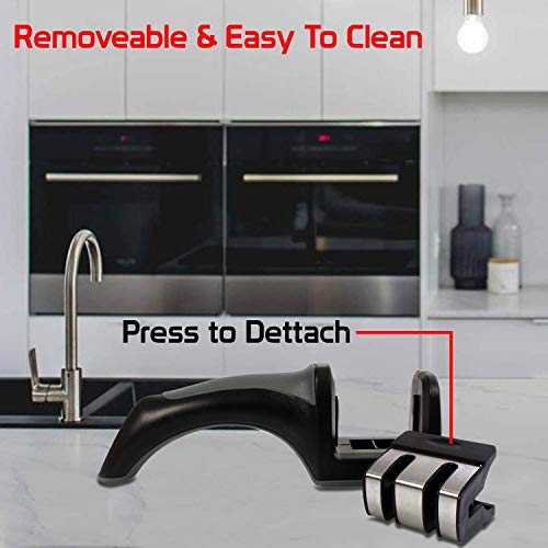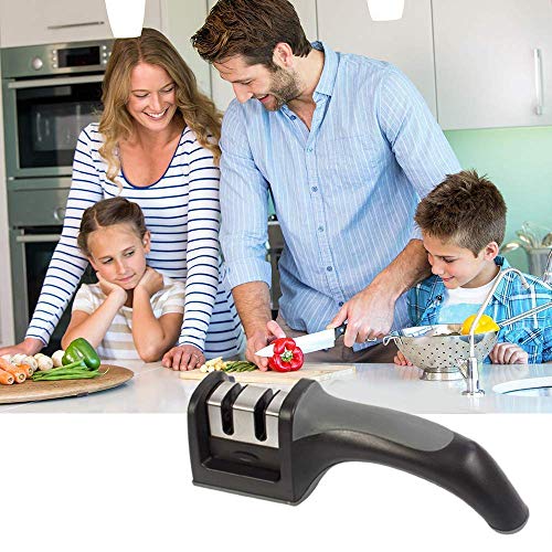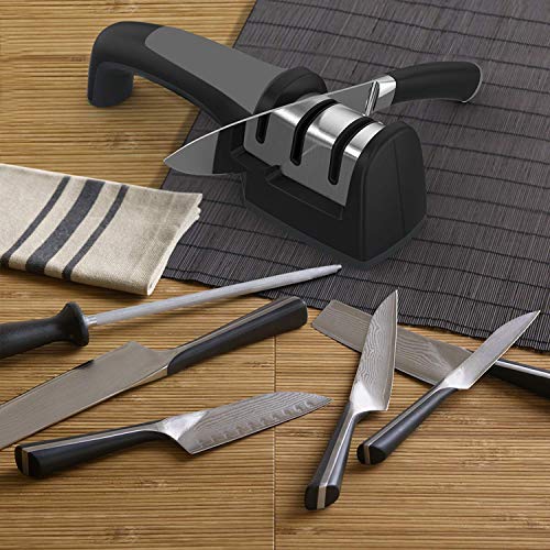Your Knife Sharpener is the perfect tool for keeping all of those kitchens, chef’s, paring, hunting, pocket, electric, serrated knives, and Scissors razor sharp. The Tungsten Carbide blades shape even the dullest of knives into a double edge finish. Watch as your previously useless knives come back to better-than-new quality. Sharpen, hone and polish your dullest knives in minutes with this advanced 3-Stage sharpener. First two stages sharpen and hone using 100% diamond-coated abrasive disks. Final stage uses flexible stropping disks for a finished polish. By Original Mart