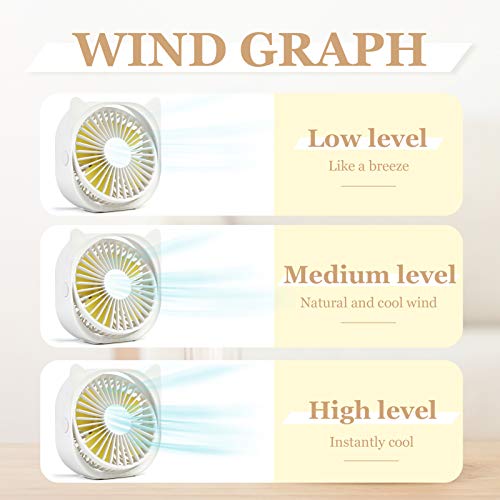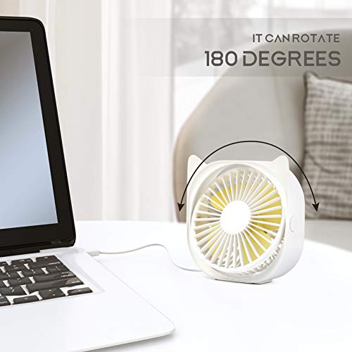 【Exquisite Design】: Compact lightweight design for maximum convenience. Small and lightweight personal fan provides cooling air circulation in any desired directions with 90 degree tilt rotation.Perfect for use in home,car, office, desktop, camping, or travel.