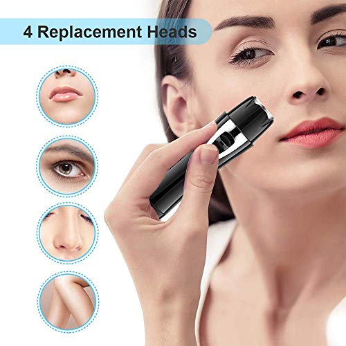 Flawless 4 in 1 hair removal this women hair remover has 4 replaceable heads: rotatory shaving head/ eyebrow razor/ nose trimmer/ body shaver.