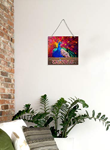 PAPER PLANE DESIGN Wood Door Hanging (12 INCH X 8 INCH) Welcome Sign With Metal Chain (Welcome -4)
