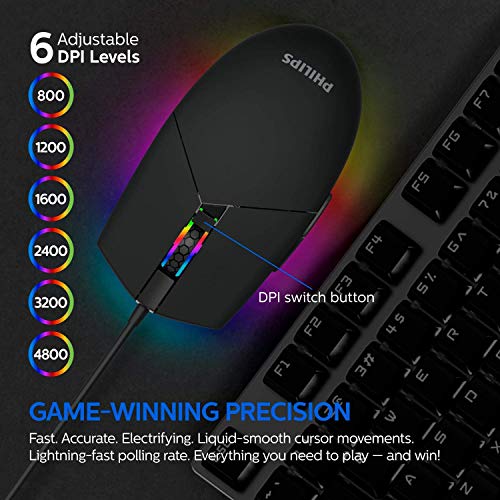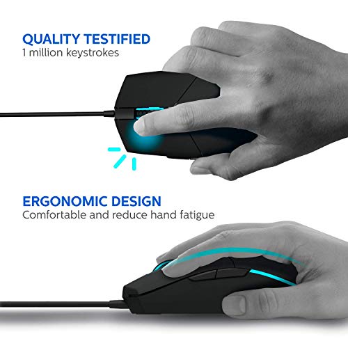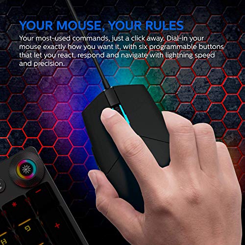 PHILIPS USB 5-Button Gaming Mouse RGB 7-Color Breathing Chroma FX | Adjustable up to 6400 DPI | High-Precision Wired…