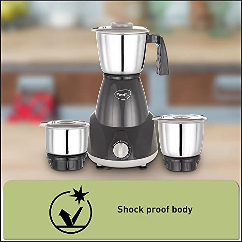 Specification: Pigeon by Stovekraft Amaze 500 Watt Mixer Grinder with 3 Stainless Steel Jars (Dark Grey, Medium) (14772)