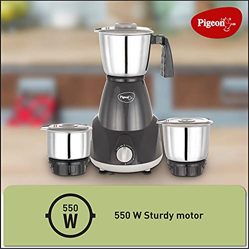 Pigeon by Stovekraft Amaze 500 Watt Mixer Grinder with 3 Stainless Steel Jars (Dark Grey, Medium) (14772)