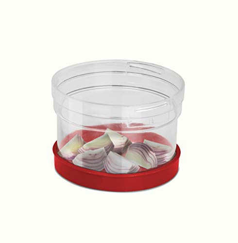 Dices onions into perfect size+^+Quick and easy to use+^+Compact; Making it easy to store+^+Easy to clean and dishwasher safe