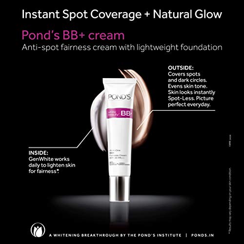 Pond’s BB+ Cream is a 2-in-1 formula, which is a combination of a brightening cream and lightweight foundation. It helps to give you dual benefits of instant spot coverage and natural glow. Now available in two shades – 01 Original: For light to medium skin tone and 02 Medium: For medium to deep medium skin tone. Formulated by the Pond’s Institute, this cream helps cover spots and dark circles to give you an even skin tone with a natural coverage and finish. It hides the blemishes while minimizing the size of pores to give you a smooth look. Pond’s BB+ cream leaves your skin looking spot-less instantly to give you that picture perfect look every day. Suitable for all skin types. Ponds BB+ cream ensures that your skin looks even toned and visibly brighter in a natural way. This cream is designed to provide immediate as well as long lasting impact. Enriched with the goodness of Vitamin B3, Vitamin E and Allantoin this cream has clinically been proven to brighten skin and reduce dark spots. Get your hands on this great Ponds BB cream that is non-oily, non-pore clogging and light on the skin. Pond’s BB+ cream also provides sun protection with SPF of 30 and PA++. Apply this BB+ cream before stepping out in the harsh sun and your skin is sure to stay protected. You can now sport radiant and flawless skin in a matter of minutes with this BB cream. The Ponds BB+ cream does not smudge even if you sweat. This cream gives you a soft glow that lasts for the entire day.