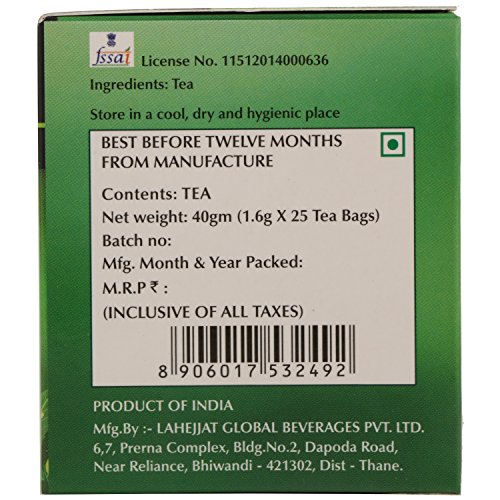 Green tea is the favourite among fitness enthusiasts. It is one of the least processed teas, known for its vegetal flavours and rich antioxidant properties. Green tea has been shown to boost the metabolic rate and increase fat burning in short term, although not all studies agree. Along with white tea, it is amongst the least oxidized of all teas. So the antioxidants in it is quite high and caffeine is low, in contrast to the high caffeine black tea. Green tea can help you lose weight, It may lower your risk of type II diabetes, may reduce your risk of cardiovascular disease, various antioxidants in it may lower your risk of various types of cancer. It can kill bacteria, which improves dental health and lowers your risk of infection. Lemor tea has the unique astringent flavour to them and also a very strong taste. This box contains 25 tea bag of premium green tea. About Us: established in the year 1971, lahejjat global beverages private limited is a renowned manufacturer, trader and supplier of tea leaves and flavoured teas such as green tea, cardamom flavoured tea etc. We have 4 more brands tea business to explore namely Lemor, peeo g, ratnadeep & tejdeep.