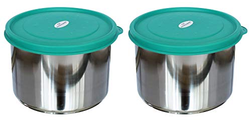 Princeware Dura Fresh Stainless Steel Tall container set of Two (400ml X 2 pcs set), Lids in Assorted Colours. Stainless Steel. Leak Proof. Dishwasher Safe. Stackable.