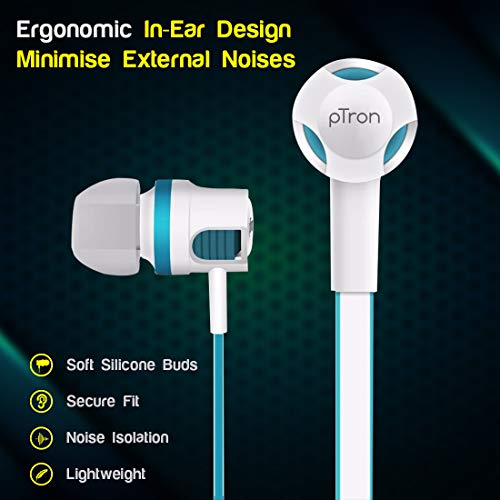 PTron HBE5 Raptor in-Ear Stereo Sound Wired Headphones with Mic, 10mm Powerful Drivers, Passive Noise Canceling…