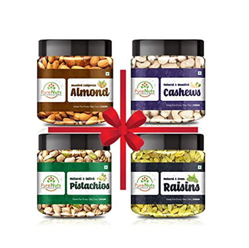 Specification: Pure Nuts Dry Fruits Combo Pack – (250g * 4) 1kg (Almonds, Cashews, Pistachios, Raisins) – All Premium.