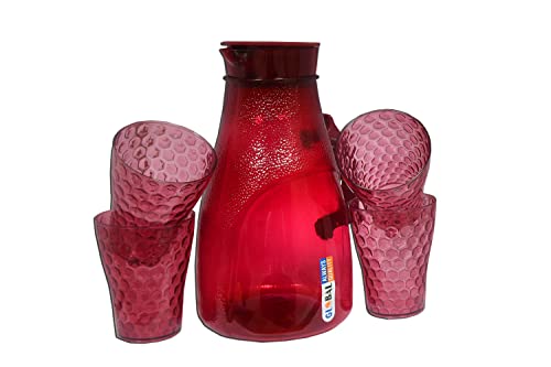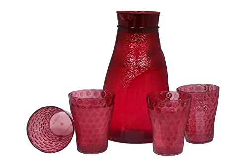 Specification: RADHI BEAUTIQUE Unbreakable 1 Water Lemon Juice Jug and Drinking Plastic Transparent Water Glass Set 4 Pieces Glass…