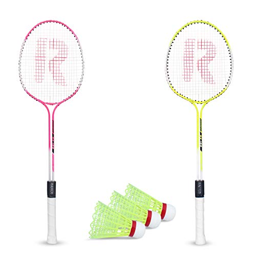 Ramex Badminton Rackets, Badminton Racket Set of 2 with 3 Pieces Nylon shuttles (Green & Pink)
