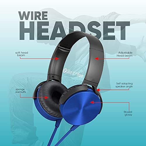 Specification: Raptech RT-PLAIN-XB450 Wired Over the Ear Headphone with Mic (Blue)