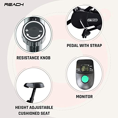 ERGONOMIC SEATING – The Reach Exercise Fitness Bike is ergonomically designed for comfortable seating with large adjustable seat cushions. Its handlebars are packed with high-density foam, which will prevent you from experiencing stiffness of the back, strains, and muscle aches as you work out.