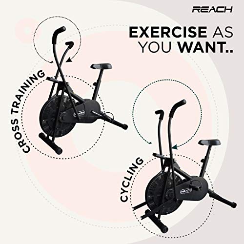 Reach AB-110 Air Bike Exercise Cycle with Moving or Stationary Handle | Adjustable Resistance with Cushioned Seat…