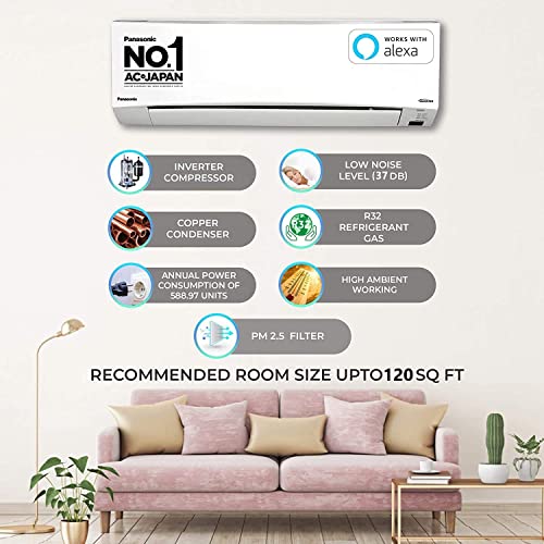 Specification: (Renewed) Panasonic 1 Ton 5 Star Wi-Fi Inverter Split Air Conditioner (Copper, Shield Blu Anti-Corrosion Technology, PM…