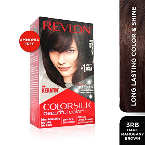 Revlon Colorsilk Beautiful Color, Permanent Hair Color with Keratin, 40ml + 40ml + 11.8ml – Dark Mahogany Brown 3RB…