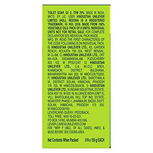 Specification: Rexona Coconut and Olive Oil Soap For Silky Smooth Skin, 150 g (Pack of 8)