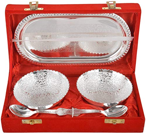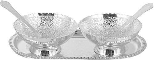 Specification: Richi Rich Silver and Gold Plated Brass Bowl and Tray Set of 5 Pcs, Floral