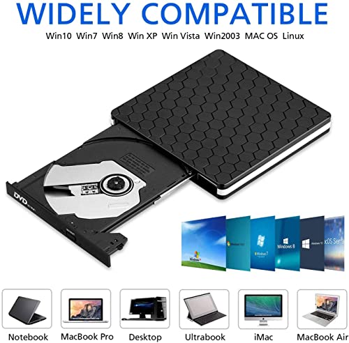 【DVD Burner -Plug & Play】 CD drive external usb, no need for external driver and power supply. Just plug it into your USB port, then our rts DVD driver will be detected and your happy journey begins.