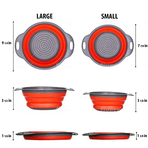 Package includes- 2 Round Silicone Foldable Colander with 2 different sizes. Perfect size for storage in kitchen and for washing fruits, vegetables, pulses