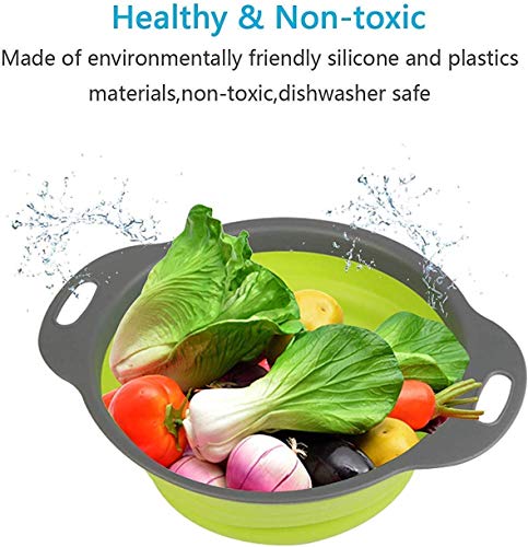 PA Free, this kitchen colanders set composed of non-toxic, environmentally friendly rubber base and handle, and green silicone. Heat-resistant up to 302ºF, can be immersed in boiling water, we guarantee no harm to human health, safe for your food and your family