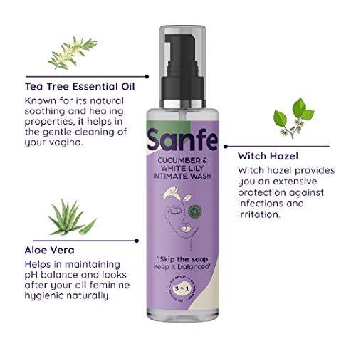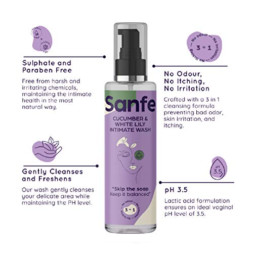 CUCUMBER AND WHITE LILY sanfe intimate wash with benefits of lavender and chamomile comes in a 100ml bottle with a comprehensive user guide and manual to help you with the product.; Color: Purple; Package Content: 1 Natural intimate wash; Target Audience: Women