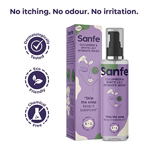 3 in 1 – no odour, no itching, no irritation sanfe intimate wash is free from all the harsh chemical ingredients. Its 3 in 1 formula prevents bad odor, skin irritation, and itching.