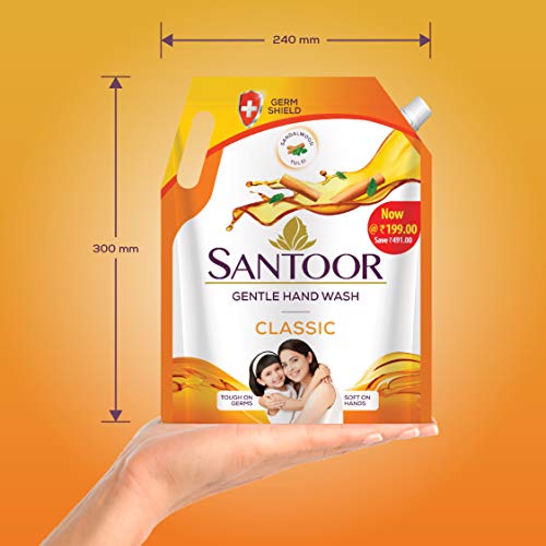 Santoor Classic Handwash enriched with the natural goodness of Sandalwood and Tulsi offers unique dual benefit of “Tough on Germs and Soft on Hands”.